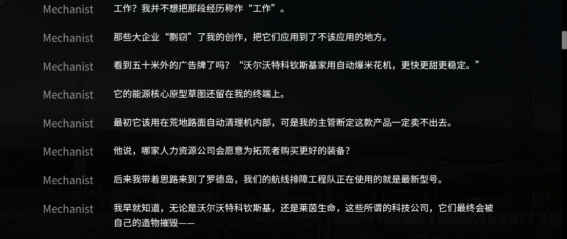 Mechanist在来到罗德岛之前,在城市边缘的小基地中工作过(即使本人不愿意承认那算是工作),这位天才的工程师的创作被大企业剽窃