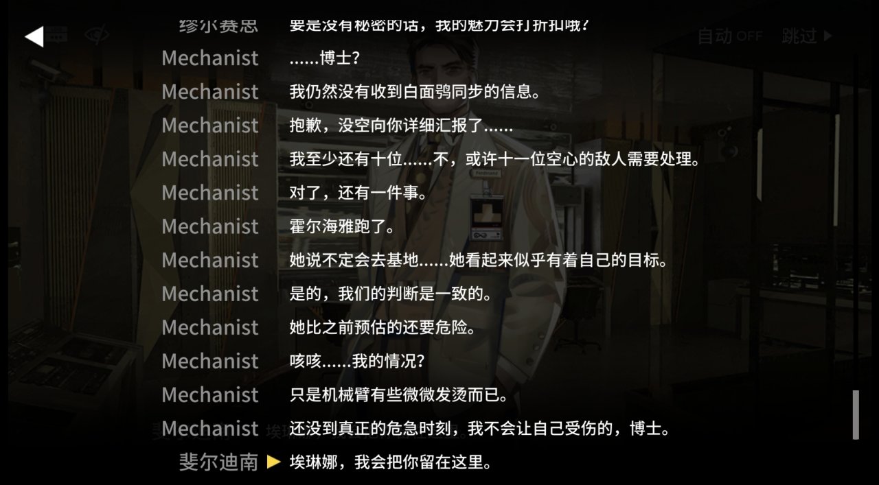 在性格方面,Mechanist被博士亲自吐槽过,难怪与Logos是好搭档,两者性格非常相似,Mechanist说话,做事绝不拖泥带水,雷厉风行