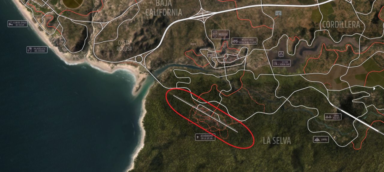 叢林機場在地圖左下角的雨林深處,季節特技"機場測試區間"旁邊,路過時順便拜訪一下就行。