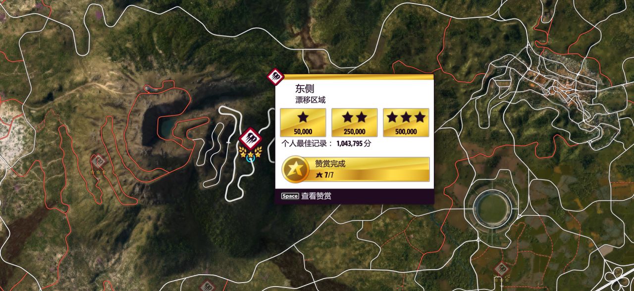 該漂移區域位於火山口右側的山道上,取得至少 1 星就算完成,即使是原廠車輛都很簡單。