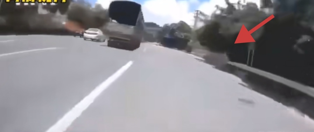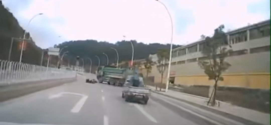 这种地方,绝逼是事故多发地,他一定有一个理由设置减速带,你不要怀疑,不管山路还是国道还是高速,不管四轮还是俩轮,没车也要减速,减速,减速,减速,注意观察周围,过了减速带你愿意跑多少就跑多少,这个图片主人公没减速,过了三四个减速带遇见掉头路口,边上大车也是人才,最右车道变道调头,撞了,虽然这个主要责任都在大车身上,但受伤的是自己,赢了道德,但输了命有什么用?所幸这个主人公刹住了没啥事,刹不住卷进去一地碎片想都不敢想。