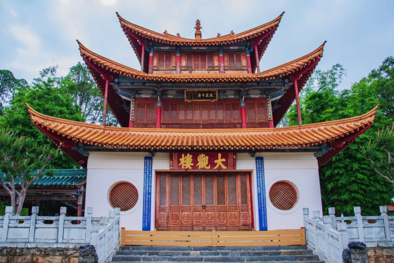 大觀樓位於雲南昆明市近華浦南面,是三重檐琉璃戧角木結構建築。因其面臨滇池,遠望西山,盡攬湖光山色而得名。孫髯翁驚世駭俗的180字長聯問世,使大觀樓躋身“中國名樓”。