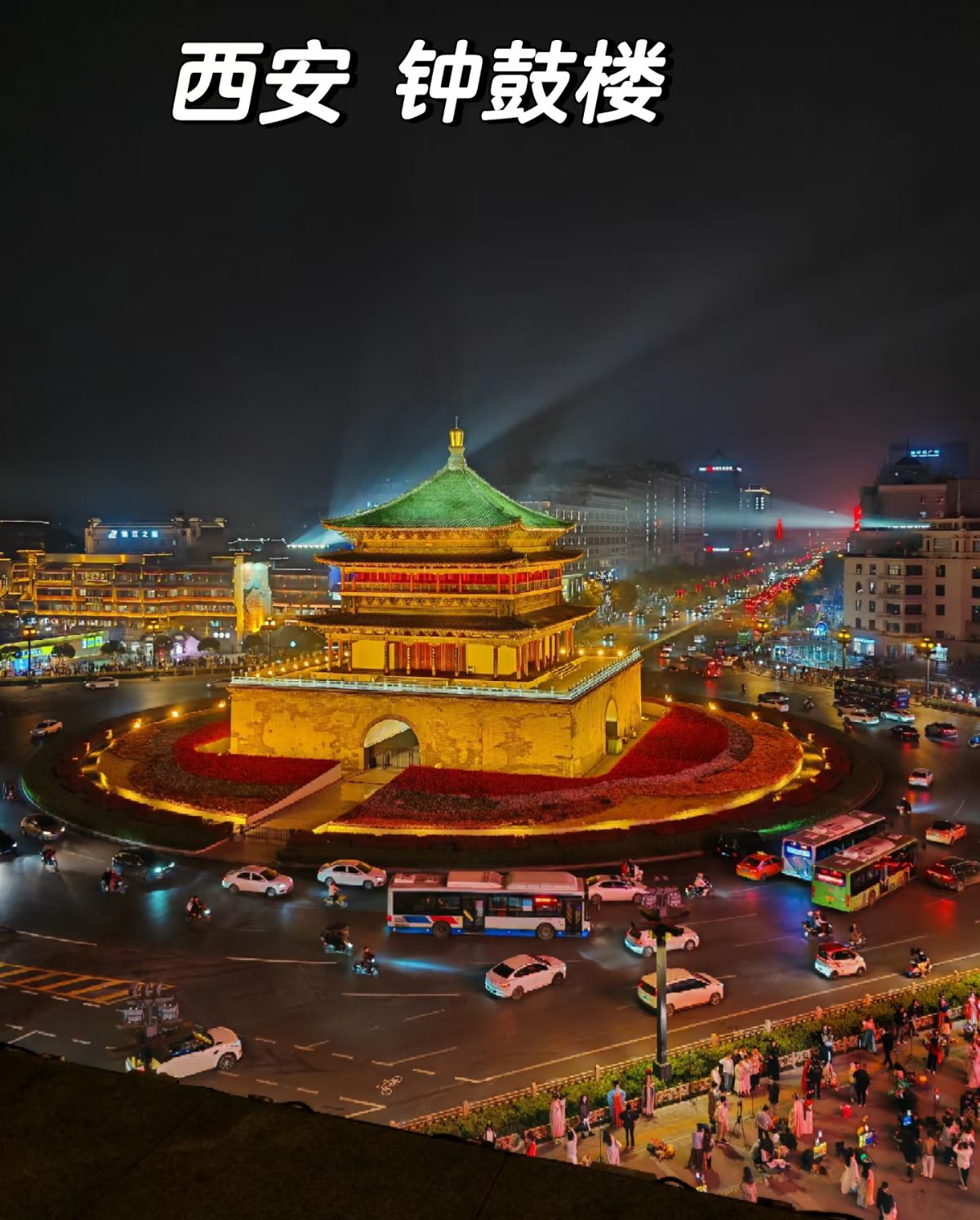 鐘鼓樓位於西安市中心,鐘樓整體以磚木結構爲主,從下至上依次有基座、樓體及寶頂三部分組成。昔日樓上懸一口大鐘,用於報警報時,故名“鐘樓”,是我國現能看到的規模最大、保存最完整的鐘樓。
