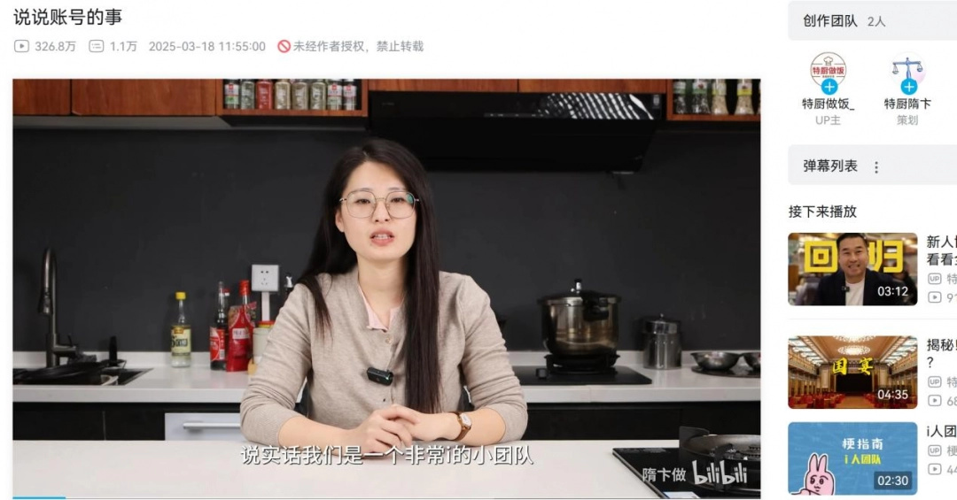 今年3月,“特厨隋卞”和“隋卞做”两个账号联合发布了视频《说说账号的事》。这个视频正面回应了断更与隋坡老师解约的事情,并用非常标准的“自我介绍”“回归初心”“展望未来”三段式结构,讲述了接下来的账号发展规划。