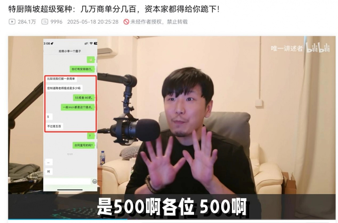 领域顶流的视频创作者,做一笔商单分成却只有500块绝对是一种奇观。