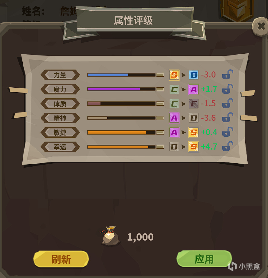 到了中後期,玩家手裏的遊戲貨幣多了以後,還可以點擊勇者六維屬性左邊的刷新按鈕,通過消耗遊戲貨幣的方式刷新六維強度。