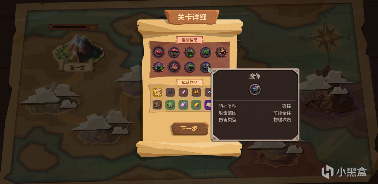 遊戲內每個關卡都能看到該關卡所有怪物的“阻擋類型、攻擊範圍和傷害類型”以及概率掉落物。