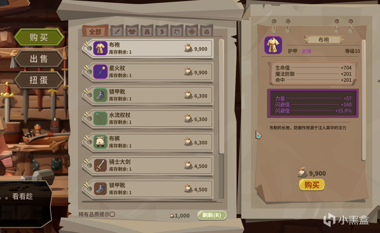 裝備可以通過遊戲頁面的“商店”設施中刷新購買,也可以在闖關結束後的獎勵一欄獲得。品級顏色和勇者顏色一樣,除此之外還多了個最差的“普通”。