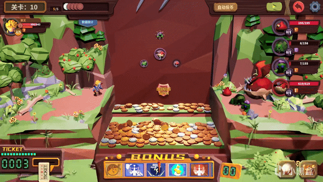 PS:阻擋物樣式是跟隨當前怪物所長的樣子來標示的,而且隨着探索的越深入,推幣機場景中的阻擋物會越來越多,boss戰時則會出現多個小怪阻擋物包圍boss阻擋物。