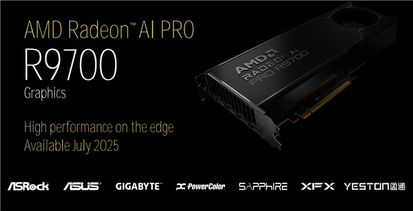 Radeon AI PRO R9700将于7月份正式上市,合作品牌包括:华擎、华硕、技嘉、撼讯、蓝宝石、讯景、盈通。