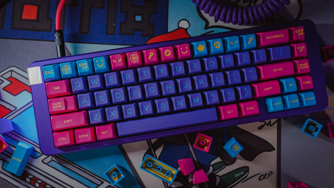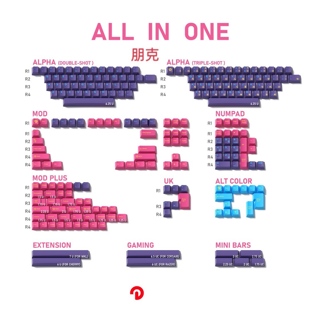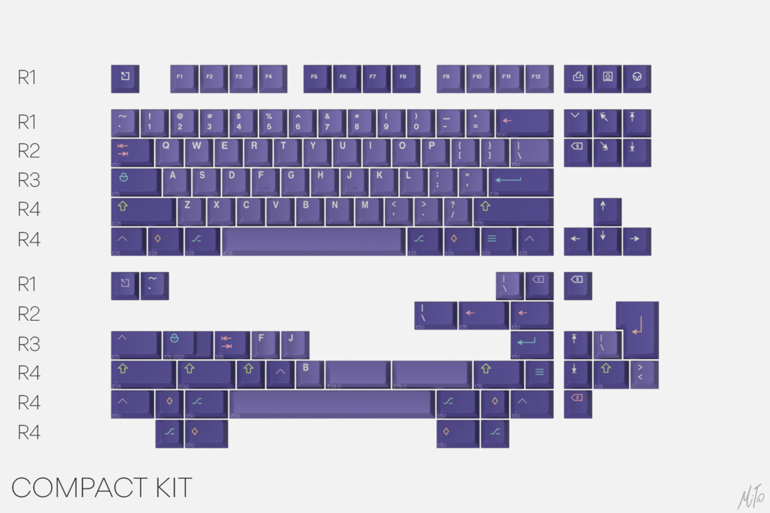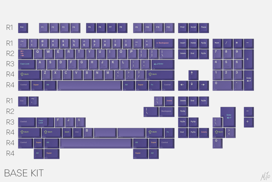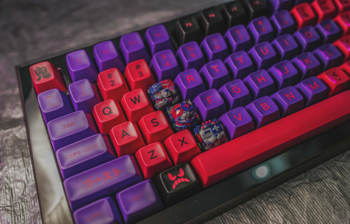 这款键帽可以说是紫色系里不可错过的经典之作,由知名设计师「MiTo」设计的赛博朋克风格键帽。这款键帽先后由GMK和SP进行了两轮R2,可见这套键帽的人气之高。