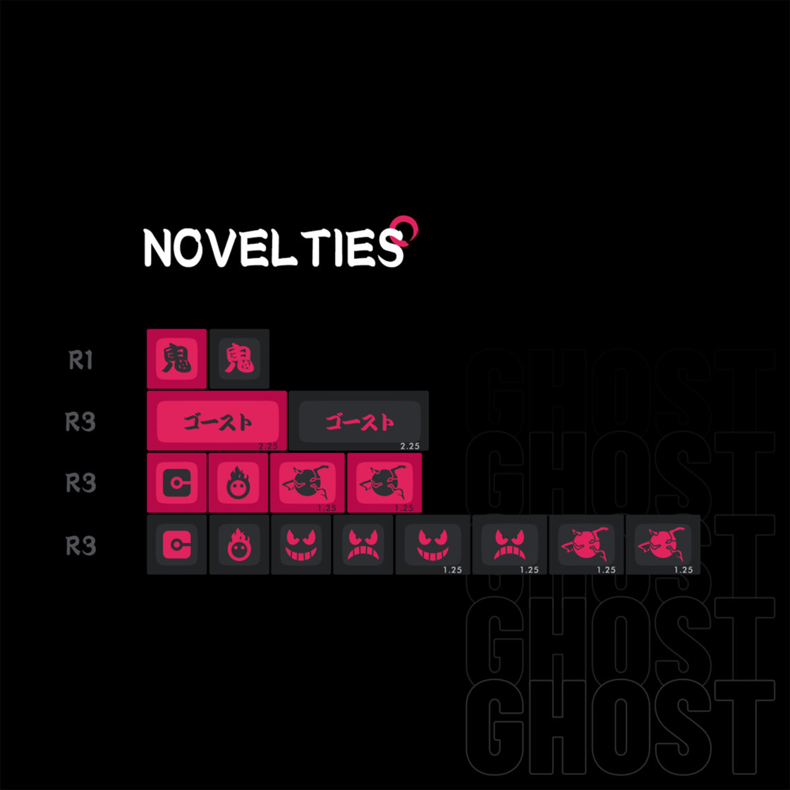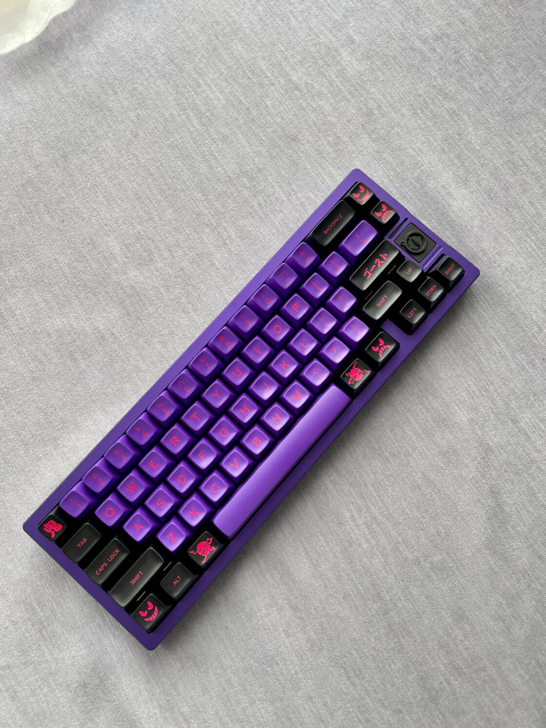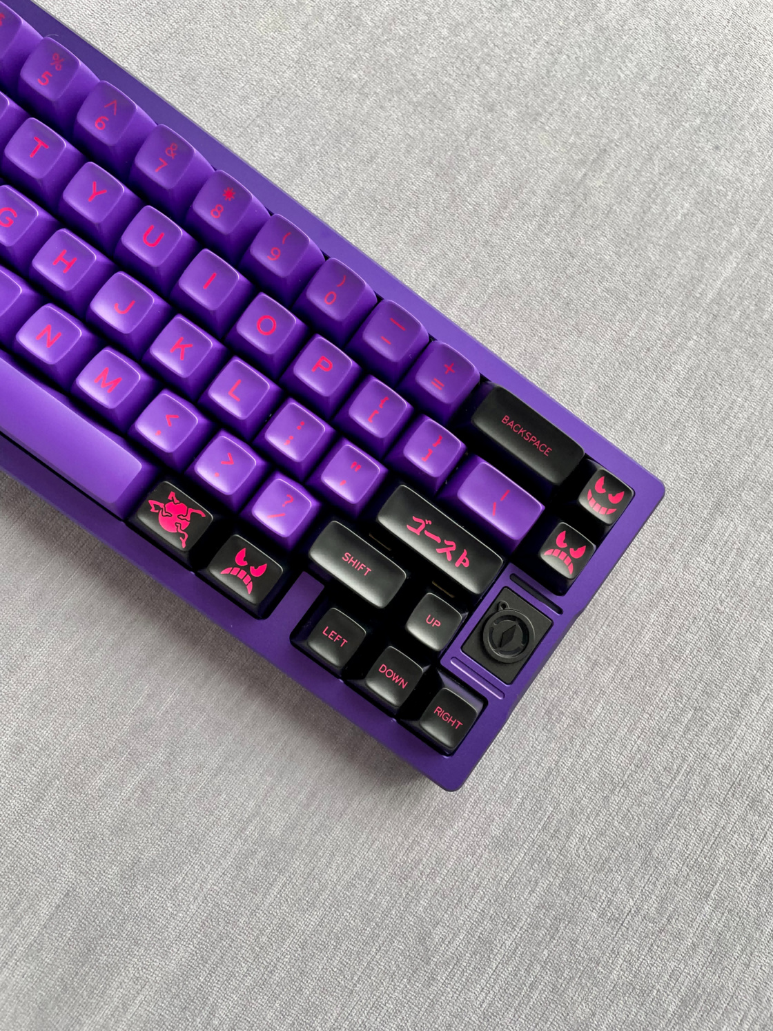 这款键帽是由物研社的设计师「York Chan」设计的二次创作主题键帽,灵感来源于幽灵系神奇宝贝——耿鬼。York Chan之前设计了很多有趣的键帽,例如SA 2600、抹茶巧克力、神圣计划等,但过去一年也陷入了一个沉寂的状态,希望后续能见到他的新设计。