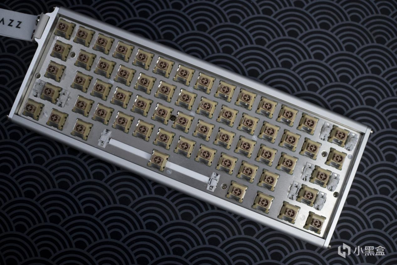 去掉全部鍵帽,我們就可以開始更換鍵帽了,ALUX 60使用的是鋁定位板,算是磁軸鍵盤裏面比較常見的定位板了,但其會比較卡軸,所以如果想要換軸的話,大概率會給自己手上壓出印記(笑)