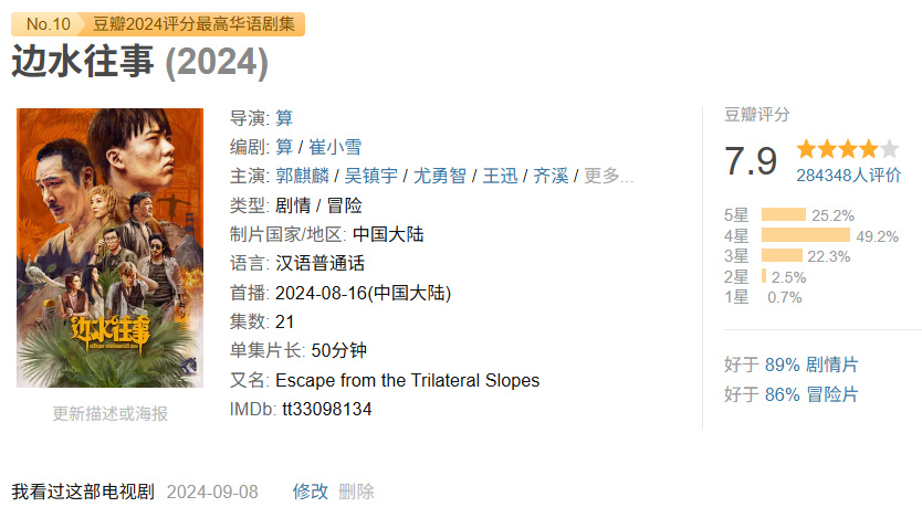 時間再放長遠一些,在過去的一年中,優酷還產出了《 邊水往事 》、《 墨雨雲間 》、《 白夜破曉 》。