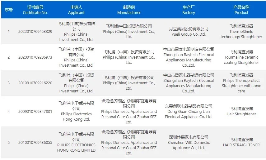 从上面的图片可以看出,飞利浦自持品牌的直发器,由#月立集团 、#雷泰电器 等企业代工。