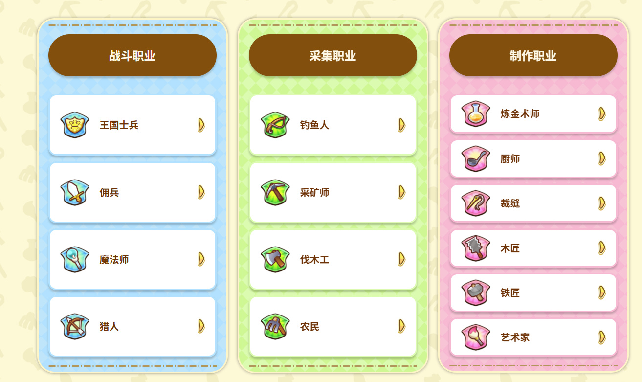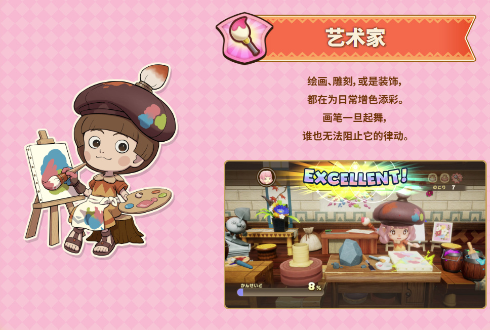 游戏职业共分为战斗/采集/制作三大类,系列标志性的职业系统在本作中进一步扩充,从原本的12种职业拓展至14种,新增“农民”与“艺术家”,让种田和创作也能成为主角的生活重心。