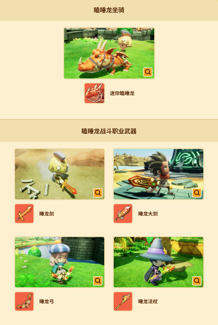 瞌睡龙坐骑、瞌睡龙战斗职业武器、角色扮演服装套装