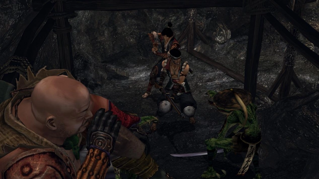 尽管你可能是讨厌谜语人和不说人话的那一挂,但《鬼武者2》的支线也不仅仅是服务于剧情的铺陈与故事的讲述,它还囊括了战斗环节——拥有羁绊系统的这几个哥们,有事他们是真的上。比如一些难缠的局面常会画面一转,屏幕中就蹦跶出几个糙汉与你并肩作战。游戏中还有一些会捆绑玩家的建筑型敌人十分恼人,初期还未掌握“一闪”时机的我,就经常将助阵角色当做垫背,作为特殊场景的突破手段。
