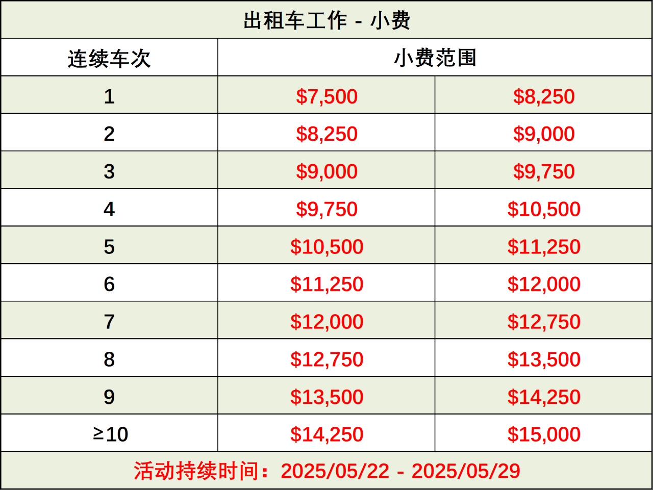 五月的最後一個活動周,運營選擇爲出租車工作提供三倍報酬,屬實是"大大滴好"啊。