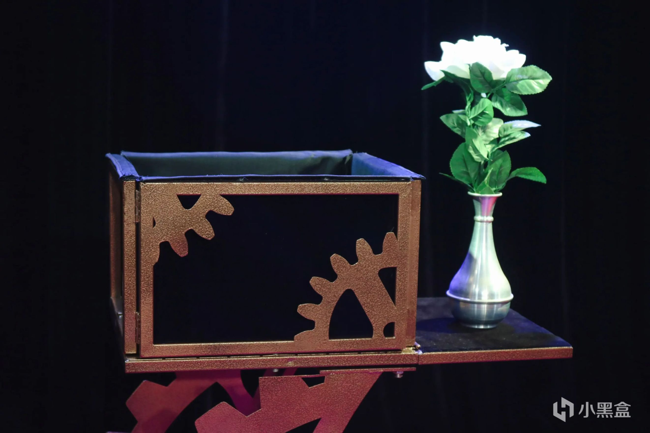 盒子开启的一瞬间发出了响亮的爆炸声,把他吓了一跳,好在只是音效效果。只见里面装着例如惊奇·沃的燕尾服等服饰和栩栩如生的机械玻璃蛇等道具。
