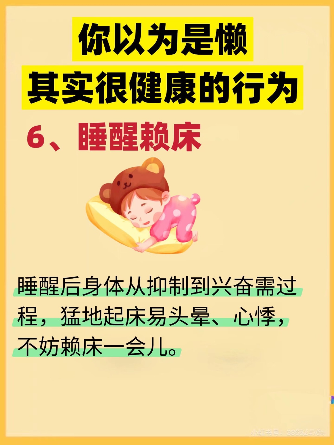 睡醒后身体从抑制到兴奋需过程,猛地起床易头晕、心悸,不妨赖床一会儿。