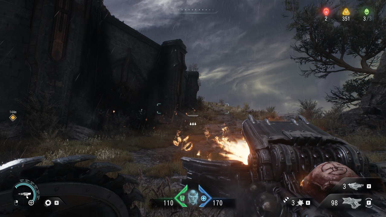 你可以看到 中世纪城墙外有防弹护盾 ,电浆枪械与符文魔法共存,本作将中世纪哥特风格与科幻元素大胆融合,创造了一个既熟悉又陌生的毁灭战士宇宙,也对应了游戏标题中的 Dark Age。