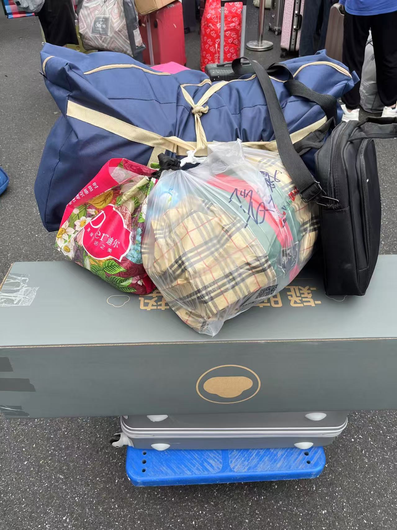 虽然她们大概率是为了学分才做的志愿者,但我还是很感激。美中不足的是那天下雨,帆布袋在推车上时掉下来了一两次,一个脸盆摔坏了,布袋的一角也因为在地上拖行而磨损了。