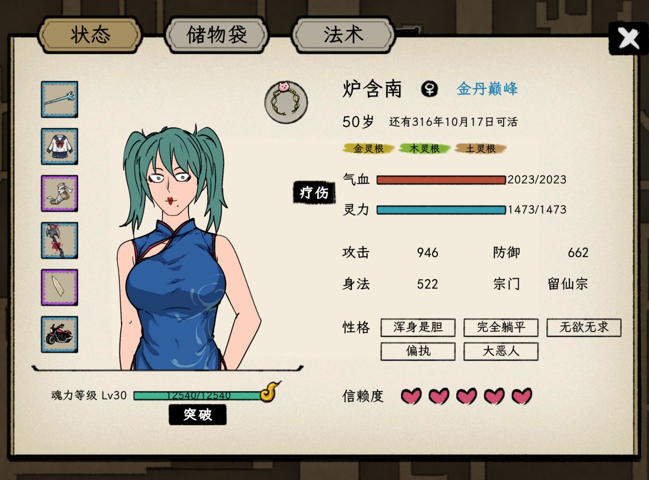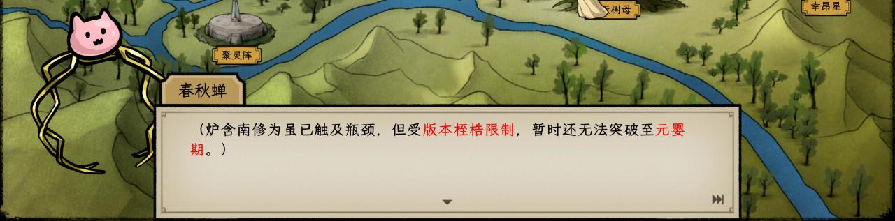 目前本作仅开放到了金丹巅峰期,元婴的区域,下次再来游玩吧。