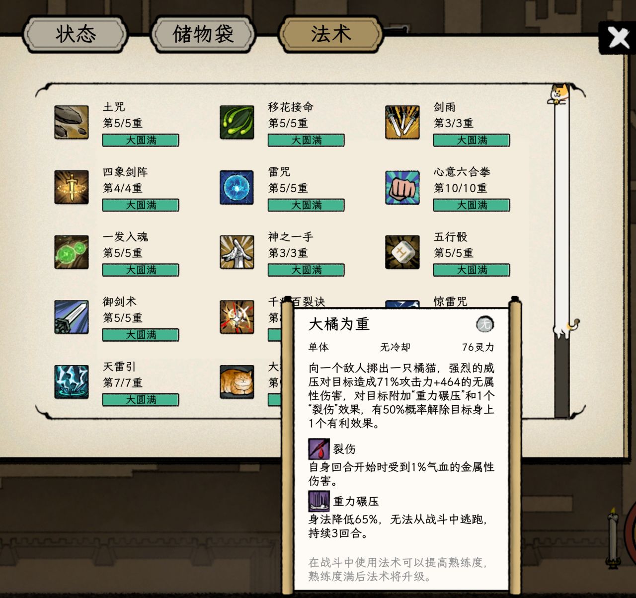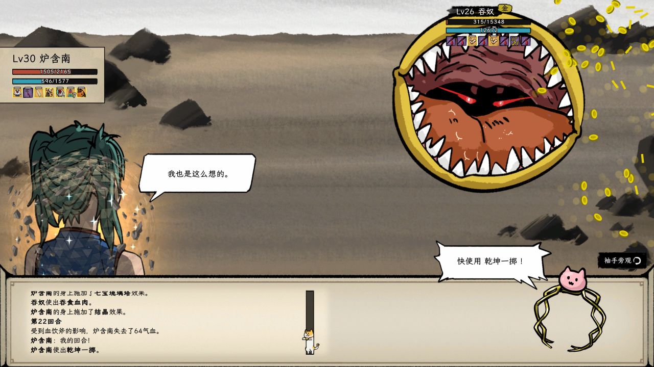 落于挂机,但却拥有上限的数值成长拉长了本作不短的游玩时间,功法金木水火土上存在着的设计,也被数值淹没。