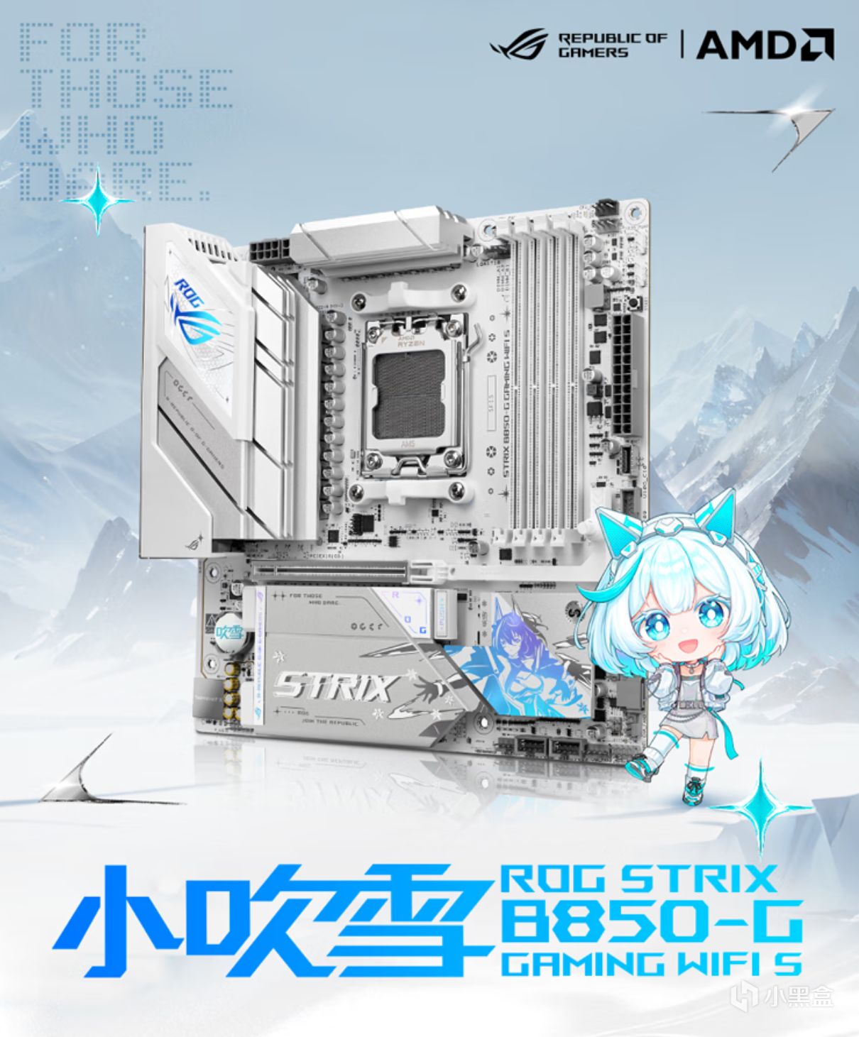 要說到最近火熱的B850M主板,那必須得是華碩這款ROG STRIX B850-G GAMING WIFI S小吹雪,外觀設計是純白到徹底,包括插槽等細節部分,存儲擴展相當亮眼,給到四組滿血X4 M.2插槽,其中一組還支持PCIe 5.0。