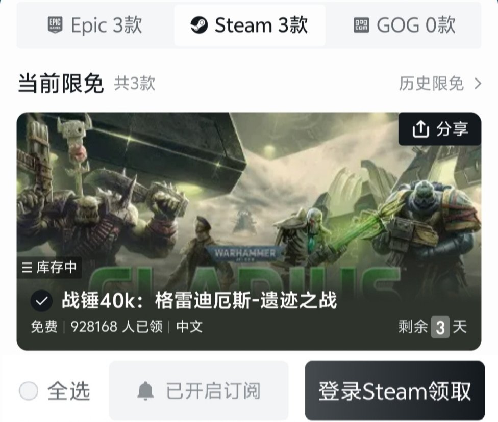 那我们的库存会显示已经拥有游戏了,所以就无法直接在Steam上商店进行领取,因此便需要用别的方法去领取,这里我把方法放下面了!