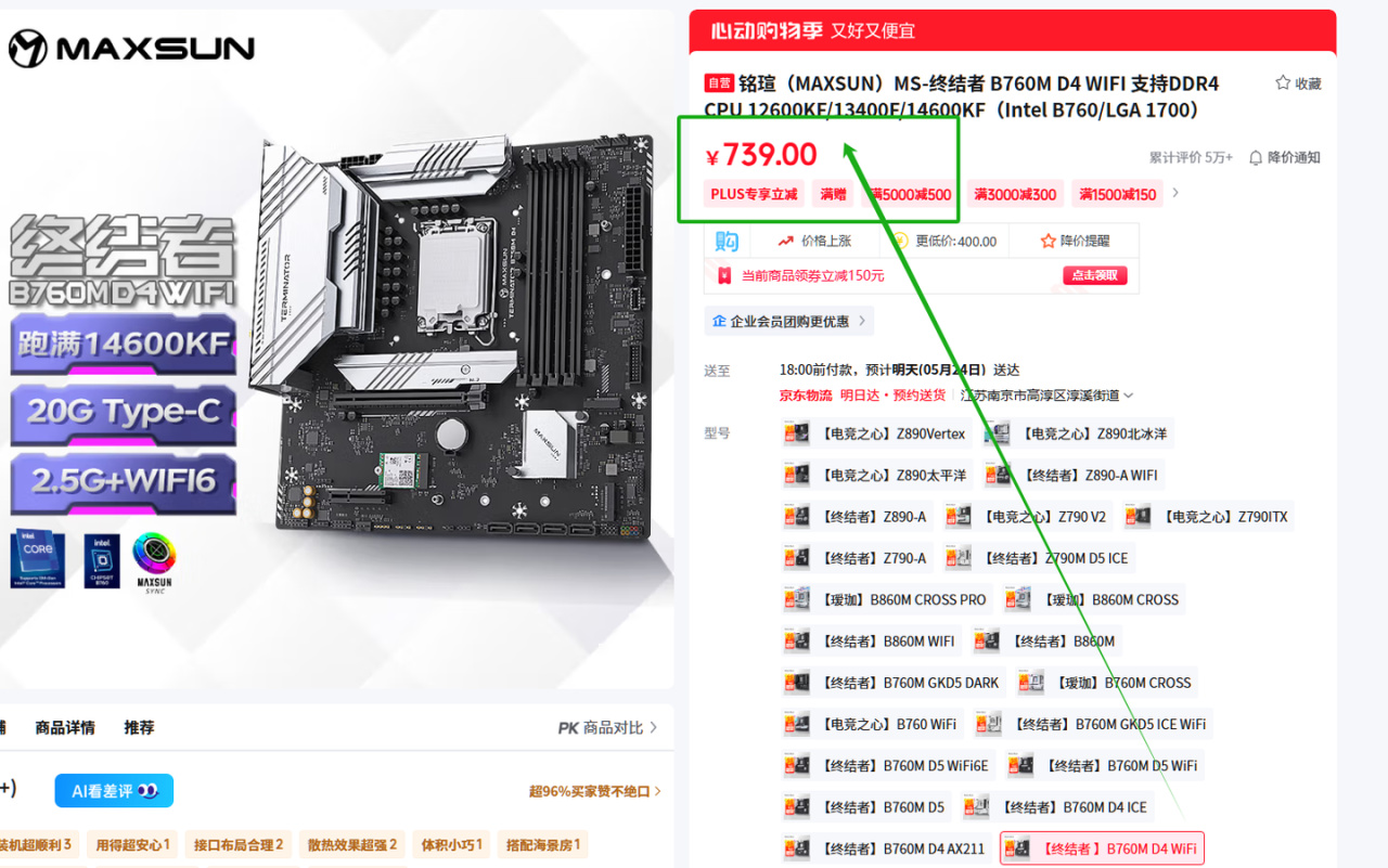 14600KF还得上到更贵、供电更好的主板才能跑满,我能找到较为便宜的主板都得七百左右:
