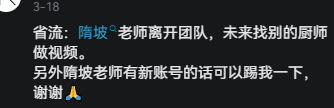 尽管网友们几乎是一边倒地为他说话,尽管同事、徒弟甚至商单的甲方都各自以不同的形式进行了支援,“特厨隋坡”这个账号也只在最开始的MCN发布侵权告知书时做出了回应,甚至文案还是小李写的。