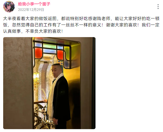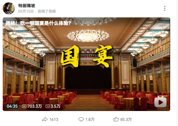 十五天后,隋老师整了个大活,凭借自身的名气和行业内认可度,他刷脸吃了一顿国宴。