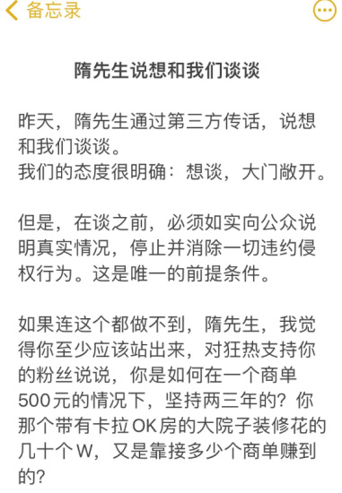 前几天,隋老师私下联系了i人团队想要和解,尽管双方暂时未达成一致,但长远来看,双方握手言和应该是个大概率事件。