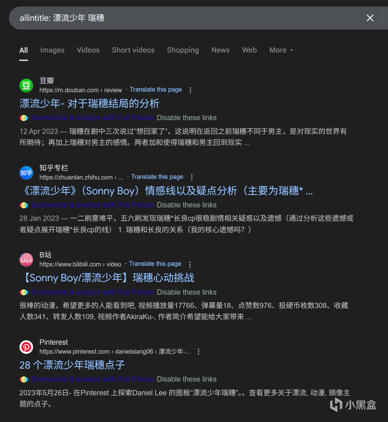 我们继续来使allintitle用漂流少年 瑞穗这两个关键词进行搜索。