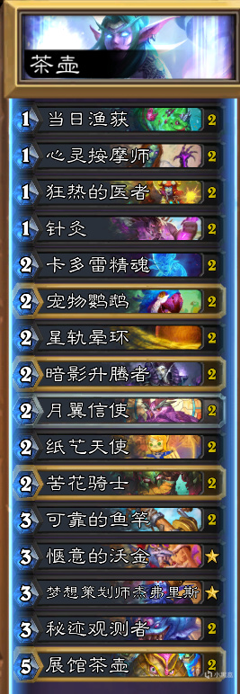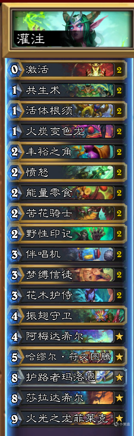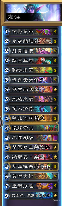 目前環境比較熱門的卡組,依靠灌注渡過前中期,最後依靠艾維娜和火球進行超級火球斬殺!