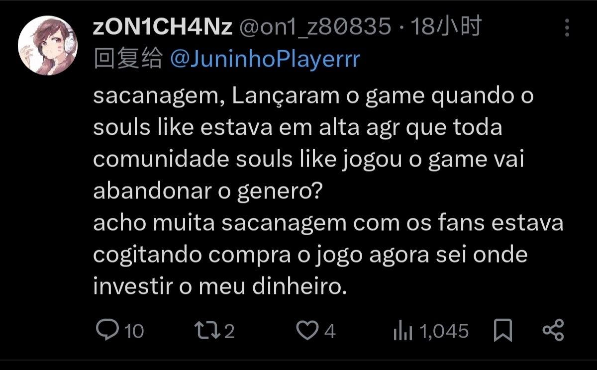 “混蛋,他们在魂类游戏正火的时候推出这个游戏,现在整个魂类游戏社区玩了这个游戏就会放弃这个类型?我觉得这对粉丝很混蛋,我本来在想买这个游戏,现在知道该把钱投到哪里了。