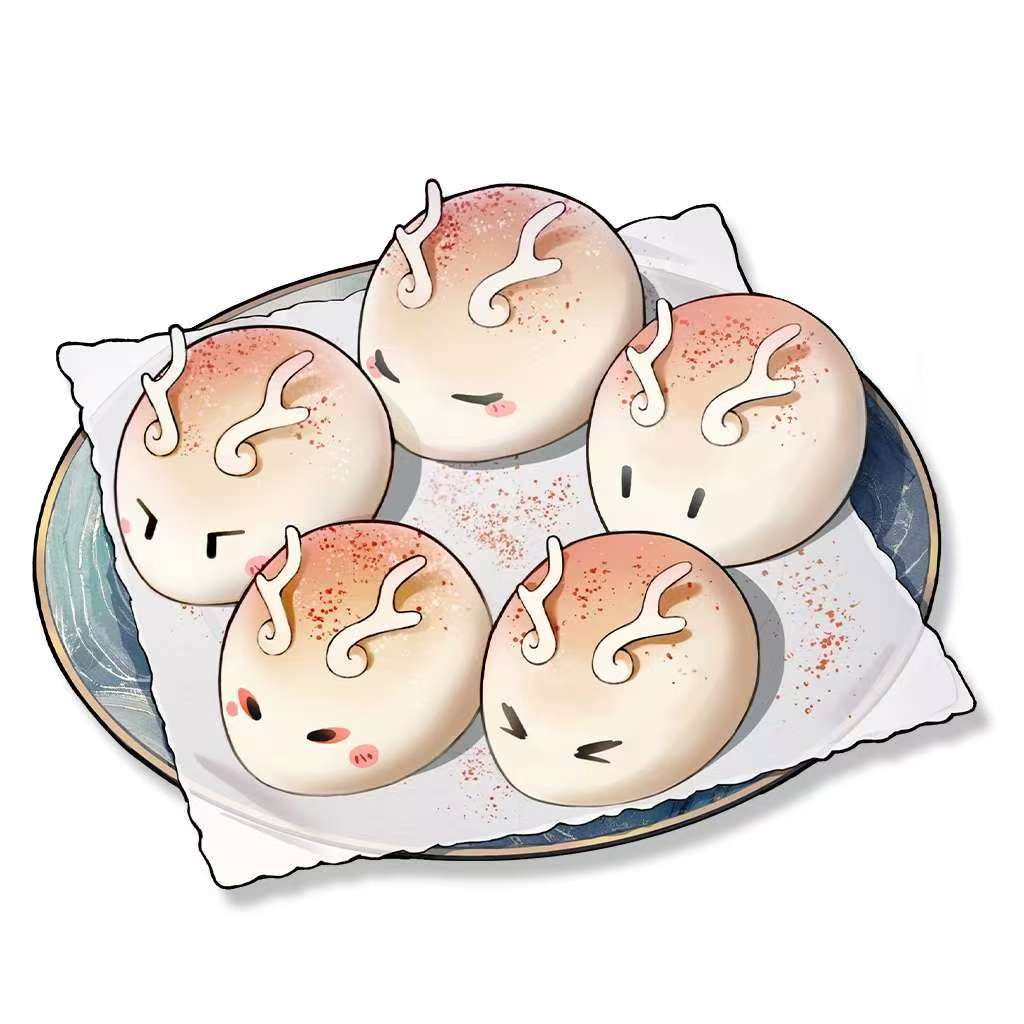 一盤今汐親手製作的小龍包,粉嘟嘟的小龍包上撒着甜甜的桂花糖粉。這一盤小龍包口味各異,有蛋奶餡兒的、蓮蓉餡兒的、豆沙餡兒的………甚至連冰皮的都準備了。