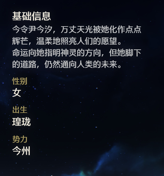 作爲歲主的共鳴者,今汐從小便擔負重任,自幼時拜長離爲師,學習武藝和技藝,並在長離的輔佐下,於豆蔻之年被歲主“角”任命爲今州令尹,於是汐以今州爲姓,改名今汐。而如此年輕便成爲了今州的領導者,不禁讓民衆們產生質疑,從秧秧對今汐的評價就能看出,人們在當時願意尊重今汐,根本原因還是更相信【角】的選擇: