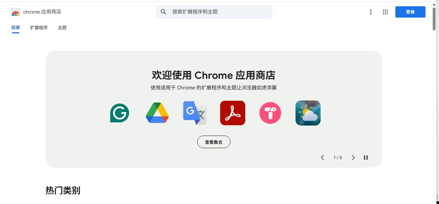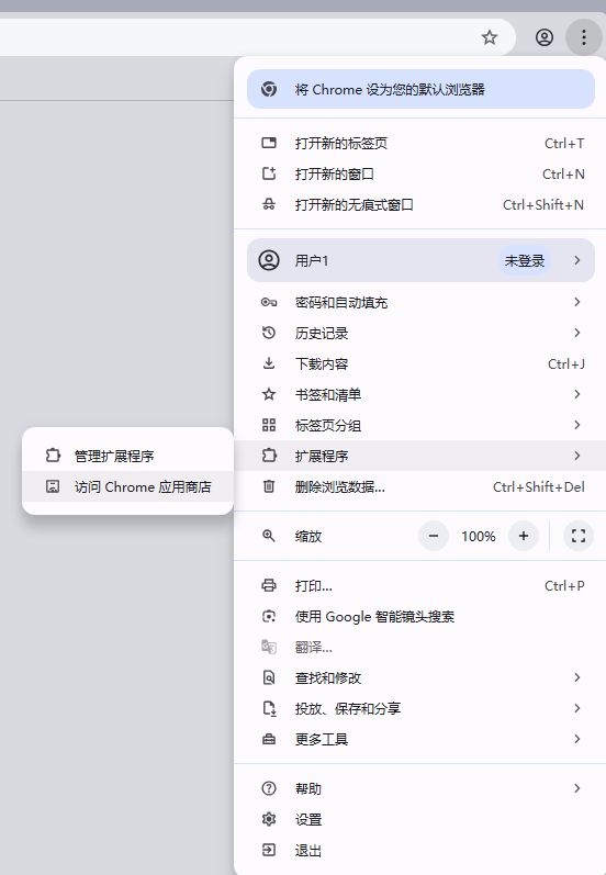 同樣是右上角的菜單按鈕,在選項卡中點擊訪問chrome應用商店