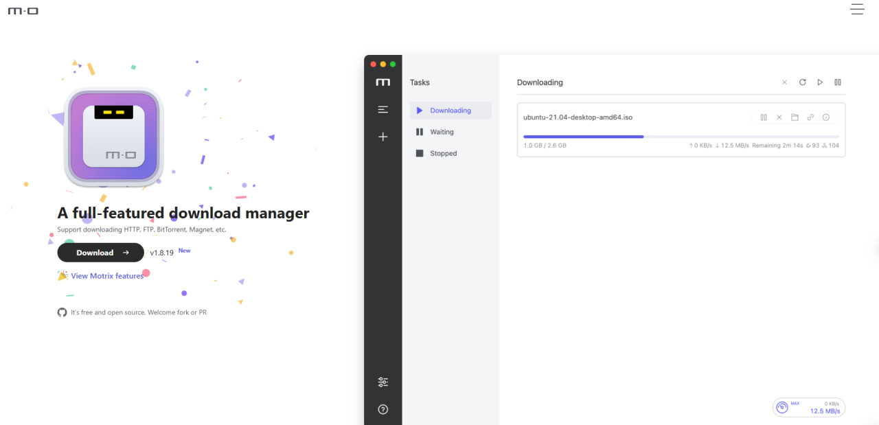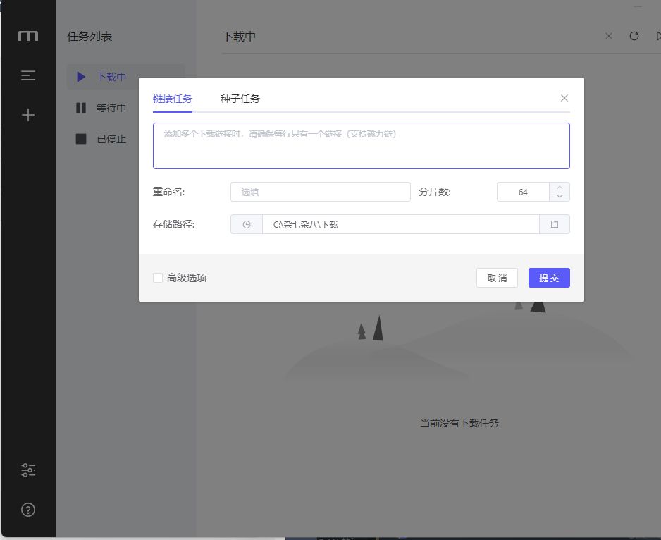 使用方法,獲得對應文件的下載鏈接後點擊主頁左側的加號,粘貼鏈接並提交即可開始下載。
