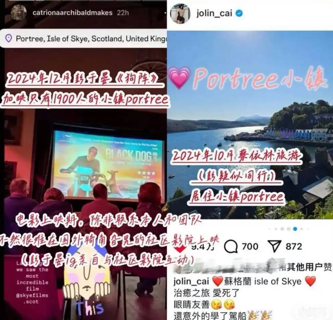 3. 旅行重合:2024年10月,蔡依林晒波特里小镇旅行照,恰与彭于晏电影《狗阵》在当地加映时间相近,有粉丝怀疑二人同游。