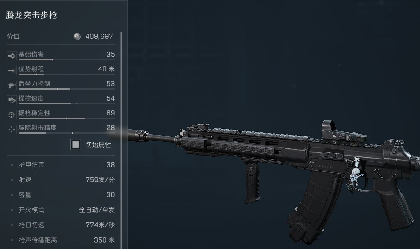如果你屏息你可以多5m射程,不需要射程也可以换成钢制膛口去掉3个贴片省4w块