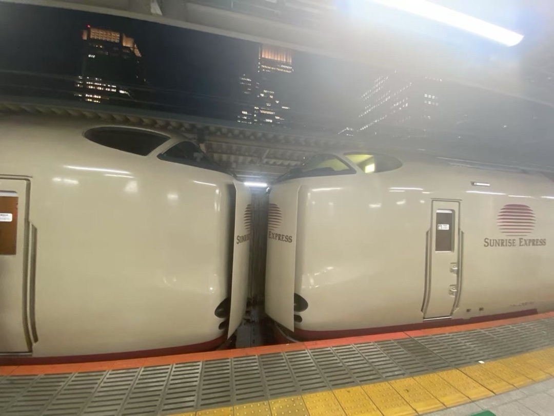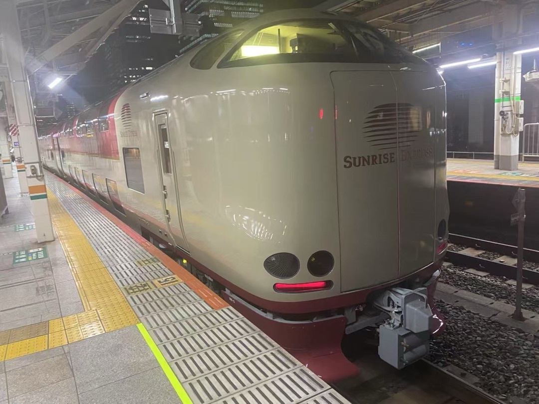 晚上九点我去东京站拍摄了日本唯一定期运行的寝台特急sunrise,类似国内的卧铺车,有独立包厢,运行在高松/出云(分别七节运行)-冈山(拼成十四节)到东京的区间段,包厢特别难抢,要提前一个月预定(ps:今年年初lz想从高松坐到大阪连大通铺都没票了)日本的铁道氛围真的特别好,列车进站的时候从70岁的老人到4岁的孩童都在用手机或相机记录列车进站
