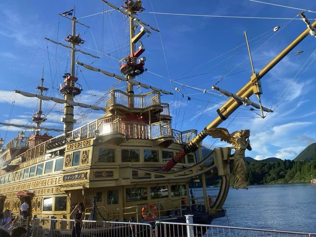 下了山,坐了芦之湖的轮渡,外观和内饰都打造的类似海盗船的形状,还是非常有意思的,可惜lz在船上睡着了,下了船已经是山中末班车的时间了,于是坐了一个小时的巴士+一个半小时的电车回了新宿,晚上吃了放题烤肉