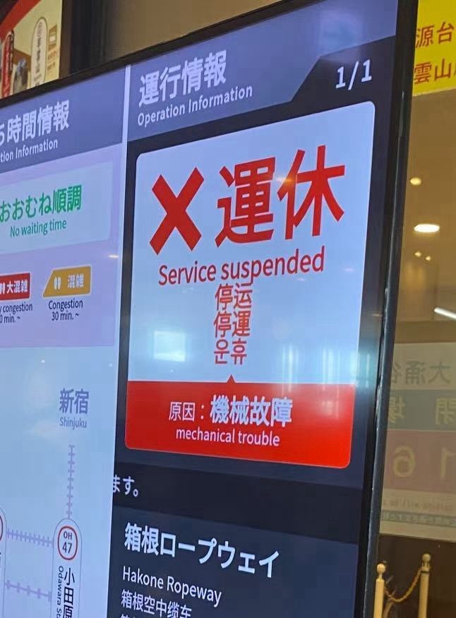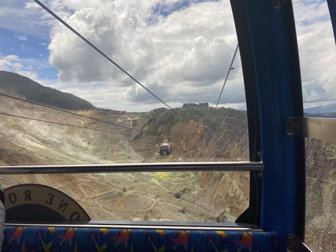 到了箱根,坐了登山铁道上山,不出意外的要出意外了,缆车由于故障停运,意味着接下来的旅程极为困难