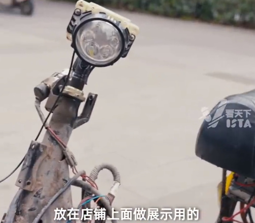 15年前出现在节目里的那辆破电动车,被两人手工拼装好,作为纪念品放在店里展示。