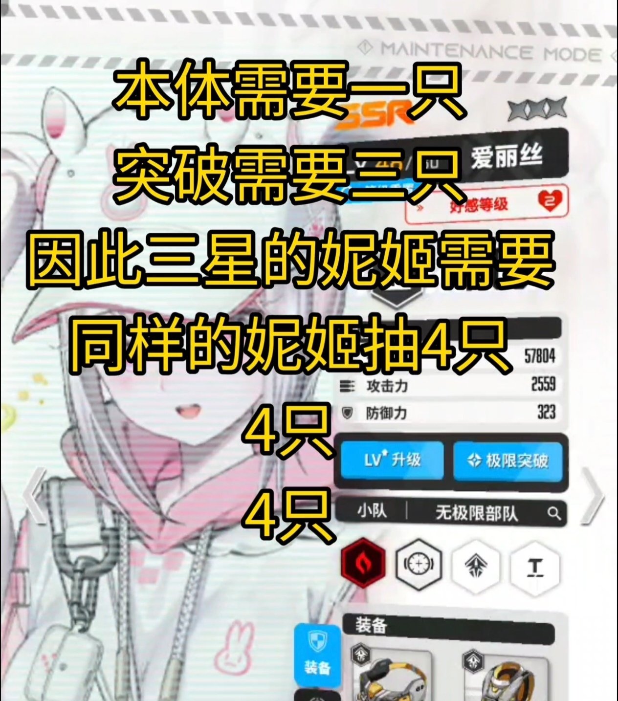 如图,回到妮姬养成界面,把迪赛尔的等级重置,那么其他同步器的妮姬就会自动同步成1级了。