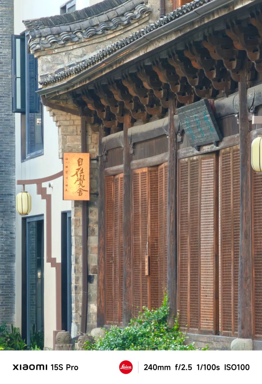 在長焦的望遠能力方面,放大看門上的燈牌,小米 15S Pro 的解析力明顯更好, 字體邊緣更清楚,而小米 15 Pro 這邊左側的小字兒已經看不太清了。